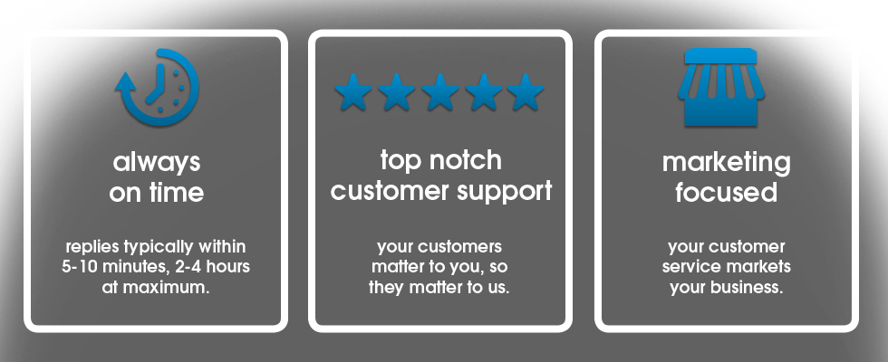 Our Chief Responder has a marketing background. While our focus will be making your customer service pave the way into stellar marketing, we can advise on your marketing plans. After all, customer service is marketing.